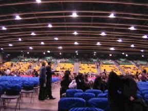 していました。今回ようやく念願かないました。 観光バスに上環にあるホテルまで送ってもらい、チェックインを済ませた後、上環散 策。 おいしいラーメン屋を目指して歩く。 香港に着いてまず食べたのが、ワンタンメン。うまい!! 続いて北京にある北京ダックの老舗が香港に店を出しているのを知り、北京ダックを 食べにいく。 8年ぶりに食べた北京ダックはおいしかったなあ。食べているとしつこくなって飽き るんだけどね。お腹一杯になりゆっくりしていると、ふと 気付いたらコンサート一時間前。急いで会場へ。 本当はもっと早く行ってstingに会えるチャンスを、と思っていたのに失敗失敗。つ いつい美味しいものにつられてしまうんだよなあ。 stingのライブ会場はワンチャイの香港会議展覧中心。19時到着。 コンサートやるところあるのって思うくらいショッピングモールみたいなすごくきれ いな建物。中に入ってみるとコンサートをするような雰囲気がない。よく見ると stingコンサートの看板が小さく道標として飾ってあるのを見つけたので歩いていく と、三階まで上がってしまう。 ![]() そのフロア-には、スタンディングバーがあり、そこで欧米人がたむろしていた。 英語もろくにしゃべれないのでその場を通り過ぎ、4階の会場へ。 すると大きなフロア-が!! 4階にコこんな大きなンサート会場が!! チケットを見せて案内されると、なんと前から三番目!丁度ドラムの真正面ではない ですか!! 今までで一番良い席だったので、あまりにもうれしくて一人でにやけながら待ってい ました。 ステージ前にはゴッツい体のガードマンが5、6人立っていました。客席とステージの 間に柵はなく、ガードマンのお兄ちゃん達はおしゃべりしていて、日本公演のときの ように緊張した雰囲気は全くなかったです。 まわりを見ていると本当に欧米人が多い。香港中の欧米人が集まってきた感じだ。 ![]() 20時半開演。セットリストは日本と同じでした。 ただstingは日本のときよりも英語でたくさんしゃべっていたと思う。 紙を見ながら広東語で挨拶もしていました。ネイホウ!ナンチャラカンチャラ〜。ネ イホウしか分からん・・・。 コンサートの雰囲気は日本と違い、手拍子はあまりしてなかったと思う(周囲は) 好きなように踊って、好きなように座って、好きなように手拍子とってという感じで した。 背後の演出はライトのみで少し物足りなかったです。 何か不思議な盛り上がり方だったと思います。 気付いたら、いつの間にか横の通路や舞台前に人が群がっていました。きちんと自分 の席にいてよ!! アンコールのevery breath you takeは会場に皆の歌声が響き渡りとても気持ちよ かった。 ![]() ![]() 香港公演でよかったのは写真がとれたこと。撮れるとは思っていなかったのでかなり うれしい。もっとズームできるデジカメ買ってればよかった・・・。ぶれている写真 多いし・・・。 海外公演、はまりそう・・。 |