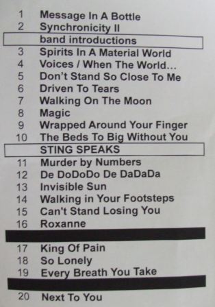 ****5月24日木曜日 成田からポートランド経由でバンクーバーへ。ウン10年前カナダに住んでたことと、学生時代のお友達と20年来のペンパルがいることもあり、バンクーバーは今回で4回目の訪問、でも前に訪れたのはちょうど10年前で、いろいろ変わってるんだろうか・・・ 空港にYちゃんとZちゃんがお迎えに来てくれた。学生時代から私に無理やりMotherを聞かされて育ったYちゃんは、会うなりいきなり「毎日ラジオで一日中ポリスの歌が流れて頭がもうポリス一色だよ〜〜〜」だって。彼女とはPlaza Clubという小さなライブハウスで26日に行われるFiction Planeと、27日のファンクラブショーに一緒に行くことになっている。 一週間の滞在のうち、FPとPoliceで計4回のライブに行かなくちゃならないのに、この日の夜は50ドルも払って、バンクーバーからSky Trainで30分ほどのところにあるDeer Lakeという場所で行われる、Arcade Fireという聞いたこともない名前のバンドの野外コンサートに連れて行かされる。というのも、Yちゃんのだんなさんから「絶対スティングも来ているはず」という無理やりなガセネタをつかまされたため。ライブは盛況で、マリファナでへろへろのカナダ人たち(こちらは法律があまいんです、合法だったけかな?)は恥も外聞もなく思い思いの動きで踊っている。しらふだったけどまどじゅも音に会わせて、面白半分にトランス状態のふりしてちょっと踊ってみたら、結構楽しい!ちょっとBroken Musicの冒頭のジャングルのシーンを思い出してしまった。 もちろんスティングなんてどこにもいない!! ****5月25日金曜日 全くポリスともスティングとも関係のない日 ****5月26日土曜日 この日の夜はDownTownのPlaza ClubでFiction Planeのライブ。Yちゃんは仕事でライブの終わりごろにならないと来られないので、ひとりでホテルから歩いて10ブロックほど先の会場に向かう。開場時間きっかり7時についたけど、門には鎖がかかり10人くらいが並んでいる。まだ中には入れてもらえないそう。あげくの果て前に並んでた人たちは一杯飲みに去ってしまい、私が一番前になっちゃった!!私の後ろにはぽつぽつとファンがあつまってるが、きっと全員が全員Policeファンだろう、だって私より若そうな人いなかったもん。明日とあさってのFan Get Together Meetingで、多くのSting Fan Clubの人たちと会う予定だけど、いったいだれがだれなのかな、想像するだけでわくわくしちゃう! 7時半ごろやっと中に入れてもらえる。私一番!!入っていきなりジントニックを頼んで一気飲みする!とそこにTextメッセージが入り、前に武道館であった、LAから来てるS君が“今どこにいるの?“”もう中に入って座ってるよ“って久しぶりの再会!彼はシアトルの出張のついでにバンクーバーのShowを見に来たのだ。合理的!!ファンのおじさんおばさんたちもいっぱい増えてきて、あちこちで久しぶりの再開のハグハグをしている。そして前座登場。地元のバンドらしいが、名前忘れてしまいました。申し訳ございません。。。でも結構うまいぞ。歌もいい感じだ。私もスツールに座りながらほろ酔いいい気分。 前座が終わりに近づき、ふと舞台上にある小窓にサファリ帽子をかぶったかわいい男の子が、歌にあわせて首をふってる。あ、Joe君だJoe君だ。髪の毛が長くなってとってもかわいいぞ。 トイレが2階にあるので2階に上がっていくと、トイレ横に“VIP Only”と張り紙がしてあるドアがある。だれだよVIPって・・・もしや・・・と思いつ用を足すおつなまどじゅ。私達はどこら辺で見ようかということになり、シャイなまどじゅは一人なら絶対一番前なんかで見ないけど、S君と一緒に人をかき分けて、舞台右端にへばりついた。前座が終わりすぐにBandのメンバー登場、といってもShowが始まるのじゃなく、彼らは自分達で舞台装置の入れ替え、スピーカー、アンプの調整や楽器の調律をやるのだ。私達は一生懸命働いてるJoe君の目の前で、「ねえねえ彼ってウッディ・ハレルソンに似てるよね」「ああ似てる似てる」とがやがや会話してました。みんなおもむろにアップの写真をとっている。私はカメラを忘れた!ちぇっ! うしろを振り向くと何人かの人たちが上を見てる。2階はバルコニーのようになっていて、私もふと上をみると懐かしいシルエットが・・・・あ、パパ!!FPのライブになるとなぜかパパ呼ばわりしてしまう。2007年の初Sting!!びっくりしたがそれよりびっくりするのがファンのこの落ち着きよう。ここにいる人たちはみんな世界からPoliceを見に来た、多分ロンドンやNYでもしょっちゅう見てるんであろう、超コアなファンばかりなんだろう。またはみんな裏ネタで知っていたのか?みんな落ち着いてる。これが日本だったら大騒ぎなのにね。みんな一目上観て“あ、来た来た”“Come Down, Daddy!!”と笑いながら言ってまたすぐ自分達の会話に戻ってしまう。私なんかええええ、これじゃJoeくんに背中向けてライブの間中ずっと後ろ見てようかなと、一瞬失礼なこと考えてしまった