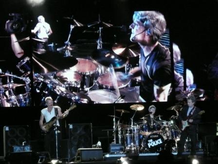海外でスティングのライブを見る。それは、この「Key Club」詣でをはじめたころからの、私の見果てぬ夢でありました。 とはいうものの、昨年のBroken Music Tourではどうしても決心がつかず、みなさまの体験をうらやましく思うばかり。 ところが、今年しょっぱなからポリス再結成という大きな花火が上がってしまっては、私もヒートアップせずには いられませんでした(時間はかかりましたけど)。行く先はぼんやりと「大好きなイタリア」と決めていたのですが、 Shigeyoさんはじめ多くのみなさんが駆けつけるというロンドンへと心が傾き、傾いたころにはすでに初日分完売という “のろま”ぶり。結局2日目の追加が発表された時点で、ついに「get ticket」をクリックしちゃったのでした。 後日、1日目のチケットもなんとか手に入れて、さて、さて、いざロンドンへ。海外ライブ初心者の旅、はじまりです。 9月6日(木) はじめてのロンドン 台風接近にもかかわらず、定時に成田を出発。私にとっては実に10年ぶりの海外旅行でありました。 NYでのロストラゲッジのために2台目の「きみまろズーム」を購入されたまどじゅさんから、 1台目をありがたく譲り受け、手荷物のなかに充電器ともども忍ばせて搭乗しました。 一人きりでの海外旅行ははじめてだったので、ちょっと緊張気味。これまでは、食事のとき以外はぐっすり 眠れることが自慢だったのに、今回は旅程の半分以上は起きていました。映画「オーシャンズ13」を見ようと思いましたが、 日本語吹き替え版がサイテー。俳優のイメージと声がミスマッチなだけでなく、声優さんたち、驚くほどへたくそなの。 笑える、を通り越して、腹が立ったので途中で見るのをやめました。 そんなこんなで、ほぼ定刻どおり、15:30すぎにロンドン着。先にロンドン入りしているゆきさんにメールを送る。 入国審査に2時間以上(!)。ラッシュ時ゆえ、ロンドン市内への移動に2時間近くかかって、ようやくホテルに到着。 荷物を置いて、ケンジントン・ハイストリートでゆきさんと再会! 「3月のスチュ来日以来ですね〜」。 一気に緊張が解けました。 ゆきさんの案内で、ロイヤルアルバートホールを外から見学。いつかここへも来なくちゃ。 初めてのロンドン、ケンジントンあたりは、通りも家もかわいくて、地図を見ながら想像していたよりも、 こじんまりした感じ。到着早々、すっかりロンドンびいきになりました。 9月7日(金) SOHOのギャラリーで若き日のポリス&100clubでFP、そしてサイレンの夜 ロンドンでの実質1日目は、ゆきさんと一緒にアンディ・サマーズの写真展へ。 きっとファンでいっぱいよ、と想像していたギャラリーは、意外にもがら〜んとしてました。 小さなスペースだったので、すぐに見終わってしまったけれど、地階と地上階を行ったり来たり、 若くみずみずしい(?)スティングの写真の前で記念写真をとらせていただきました。 ランチの後は、ゆきさんに地下鉄やバスの乗り方などロンドン歩きの基本を教わって、一人で散策開始。 ロンドン・アイからビック・ベン、ウエストミンスター大聖堂、そしてバッキンガム宮殿など見ながら、 ビクトリアステーションまで歩く。見るものすべて「うわっ〜」状態で、きみまろのシャッター押しまくり。 ああ、楽しい。バスで、ビクトリアからトッテナムまで移動して、旅の後半でゆっくり見学しようと 思っている大英博物館の下見(?)もかねて周辺を歩き回り、迷いまくり、「We will rock you」を 上演している劇場を写真に収めて大満足。楽しいじゃない、ロンドン。 さあ、夜は夜のお楽しみが待っている。お出かけ前に、フィッシュ&チップスで腹ごしらえ。 ひんやり白ワインが、う〜ん、んまい! ほんのり酔っ払いに仕上がって、いざ100clubへ。 フロアに降りていくと、おお、Yokoさんが、あっ、この間六本木で会ったばかりのまどじゅさんが! そして噂のAndyさんにも「コンニチハ」。写真でお見かけしていたよりハンサムな方でした。 まどじゅさんにお酒を買ってもらって(ありがとう!)へらへらしていたら、ジョーくんがふらりとフロアに現れる。 そこでバチっと目が合っちゃたので、「Hi!」と言ってみたはよいものの、そのあと言葉が続かない。 しょうがないから、至近距離でじーっと彼を見つめていたら、彼も目をそらせなくなってしまったようで(苦笑)、 しばしにらめっこ状態。ゆきさんが通りかかってくれて、ふーっ。ゆきさんとジョーくんは昨年のラトビア公演の 話をしていましたね。 サポートバンドの名前はわかりませんが、ジャニーズ系のかわいい子がそろっていましたよ (実は100clubに彼らの名前をメールで問い合わせてみたけど返事なし 笑)。そして、FP登場。 以前、日本で見たライブとはちょっと違う感じがしたのは、やっぱりダンが抜けちゃったことが影響しているのかな。 Two Sistersも素敵だけど、なじみ深いぶんHateにぐっとくる。そうこうしていると、 後ろから私の髪の毛を引っ張る人あり。「