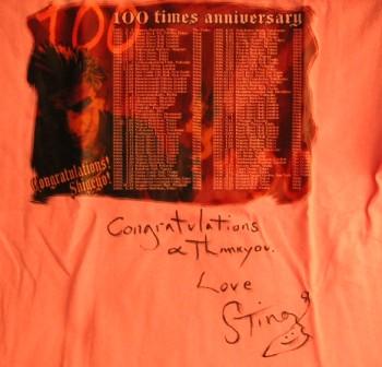 スティング&ポリスライブ100回目の大阪の飲み会では、今までお世話になった皆さんに お礼の品を用意していましたが、逆に私が沢山のプレゼントを頂いてしまいました。 有難うございました。 後から聞いた話によると、普段掲示板に来てくれる方々が秋頃から色々と計画されていた との事で、100回記念のKeyclub Tシャツを作りそこにスティングのサインを貰って くれたのです。ラビリンス東京公演の時にスティングにその話が伝わり、それで 大阪で会える事になったのですから、皆さんには何とお礼を言っていいのかわかりません。 私には内緒で皆で美味しい物を食べに行っていたのは悔しいけれど(笑)。 ![]() ピンクのTシャツの裏に今まで行った100回のコンサートの記録(後に間違いが発覚するわけですが)。 私の名前。その下にスティングの「おめでとう&ありがとう」のサイン。感動しました。 これを皆さん、大阪公演の後のパーティーまで黙っていたんですからズルイです。自分の事は置いといて。 表の胸元には Keyclub10周年の文字。他に色違いで紺とグレーまで!それにそのTシャツを入れる袋まで! 皆がアイディアを出してmakiさんが作られたとの事、本当にありがとうございます。 ![]() パーティーは、参加者20名、掲示板に来てくれている人だけでなく、オフィシャルファンクラブで知り合った 人、メールを下さった方など色々です。皆さんに楽しんでもらいたかったので告知を出した時に『100回記念 パーティー(という名のただの飲み会)』と書いたと思うのですが、完全な『おめでとうパーティー』に なっていて、ファン同士の交流を求めてやって来た方にはどうもすみません。そして、 忙しい方々が時間とお金をかけて準備して下さった事には深く御礼申し上げます。 ![]() こんなケーキまで用意されていて!これはあの堂島ロールで有名なお店に特注で作ってもらったそうで、 50センチ位の巨大なケーキ。私100回、ゆきさん50回のお祝いメッセージまで書いてありました。最後に いただきましたが、美味しかったです〜。 それなのに私が用意していた物は不格好な手作りクッキーとショボイ手ぬぐい。手ぬぐいは名前が入っているのでかなり 恥ずかしい。どうもすみません。はち巻きにでもして下さい。あ、大阪に参加されずに横浜で 手ぬぐい差し上げた方にはクッキーが入っていません、味見していたら数が足りなくなっちゃいました。まだ 持っている人は処分して下さい。1週間前に焼いたんですから。 (で、何でうさぎなんですか?それはスティングと私の干支だから。) ![]() ![]() これで終わりではありませんでした。横浜公演後にもサプライズがあり、皆さんからのメッセージの 入った寄せ書きと、「おめでとう」の文字と共に一番格好良い頃のスティングと‘おてもやん’にされた私の 写真をラベルにして貼ったワインのプレゼント。その他にも表彰状とかスティング巾着とか スティングBOXとかお菓子とかお煎餅とか本当に色々なプレゼントを頂きまして、 もうどうしたらいいか分かりません。図々しくもまとめて写真をUPします。 ![]() 飲み会に初めて参加された方に申し上げますが、今回は特別です。 何か持って行かなくてはいけないなんて思われたら嫌ですから。 ノリも特別だったと思います。ゆきさんの頬についたスティングの匂いを嗅ぐ為に列を作る人とか。 それもまずゆきさんの胸に顔をうずめてゆきさんの匂いをかいでから頬に顔を近づけるとスティングの 匂いがわかるというエロゲームのような展開で。胸に顔をうずめている時に後ろから押してあげると 喜ぶ男子。あ、まささんも並んでましたねー。私が スティングと写真を撮った時に額にキスをされたと言ったら「おでこを舐めさせろー」と追いかけて 来るまどじゅ。 ゆきさんがゲットしたスティングのサイン入りラビリンスのCD争奪戦の大ジャンケン大会。(当たった方、 おめでとうございます!)いやー、楽しかったです。 東京ナイト幹事のなごさん・ゆきさん、大阪ナイト幹事のかなさん・SATOMIさん、横浜ナイト幹事の nomuraさん、皆さん色々御苦労があったと思います。色々な 方のサポートがあって毎回楽しく過ごすことが出来ました。本当に有難うございました。 * 今回の追っかけ日記とこのオフ会レポは、今後写真をもっと美しいものに差し替えたり、文章を修正 したりするかもしれません。(2008.12.23) * スティングとの2ショット写真は・・・自分の宝物としてココには載せない事にしました。 |